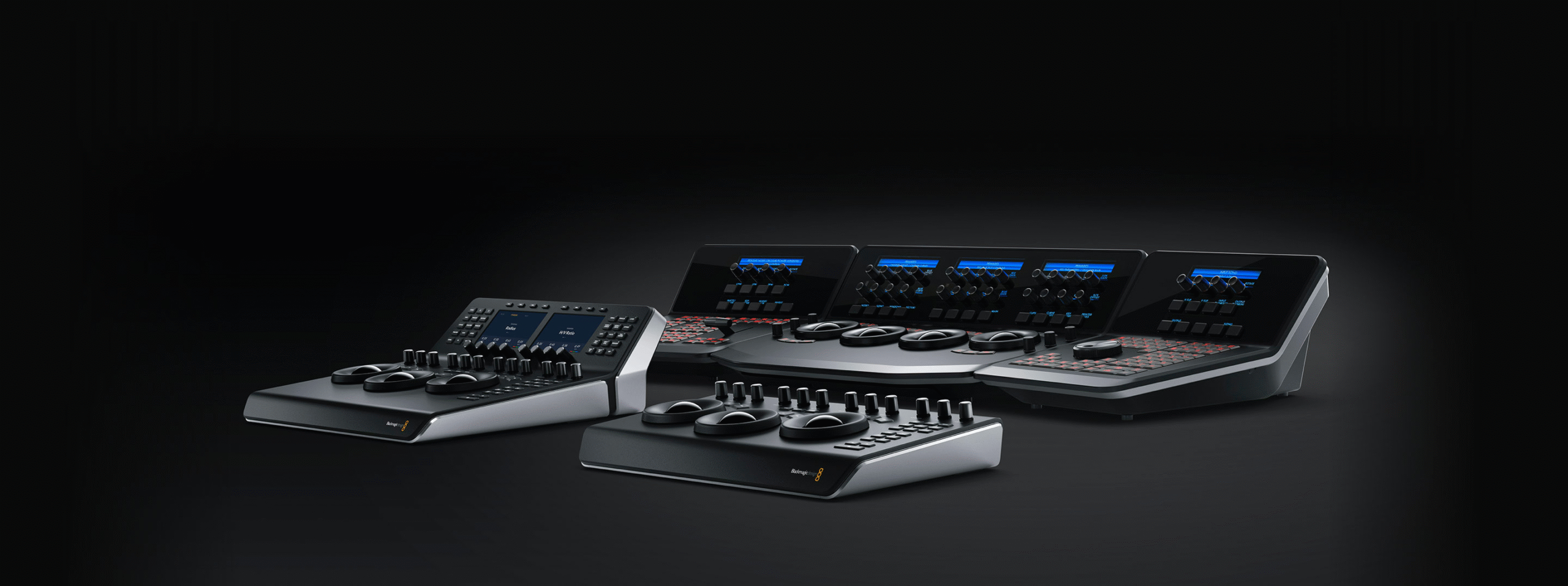 DaVinci Resolve farvepaneler giver dig mulighed for at justere flere parametre på én gang, så du kan skabe unikke udseender, der simpelthen er umulige med en mus og et tastatur. Det utroligt lille DaVinci Resolve Micro Panel er fantastisk til nye farvelæggere, der lige er startet, eller alle, der har brug for et bærbart panel. Det har tre trackballs af høj kvalitet, der svarer til farvehjulene, knapper til primære justeringskontroller og knapper til afspilning og navigation. DaVinci Resolve Mini Panel har yderligere kontroller og skærme til adgang til stort set alle paletter og værktøjer, inklusive muligheden for at flytte elruder. DaVinci Resolve Advanced Panel gør det muligt at knytte alle funktioner og kommandoer til en bestemt knap!