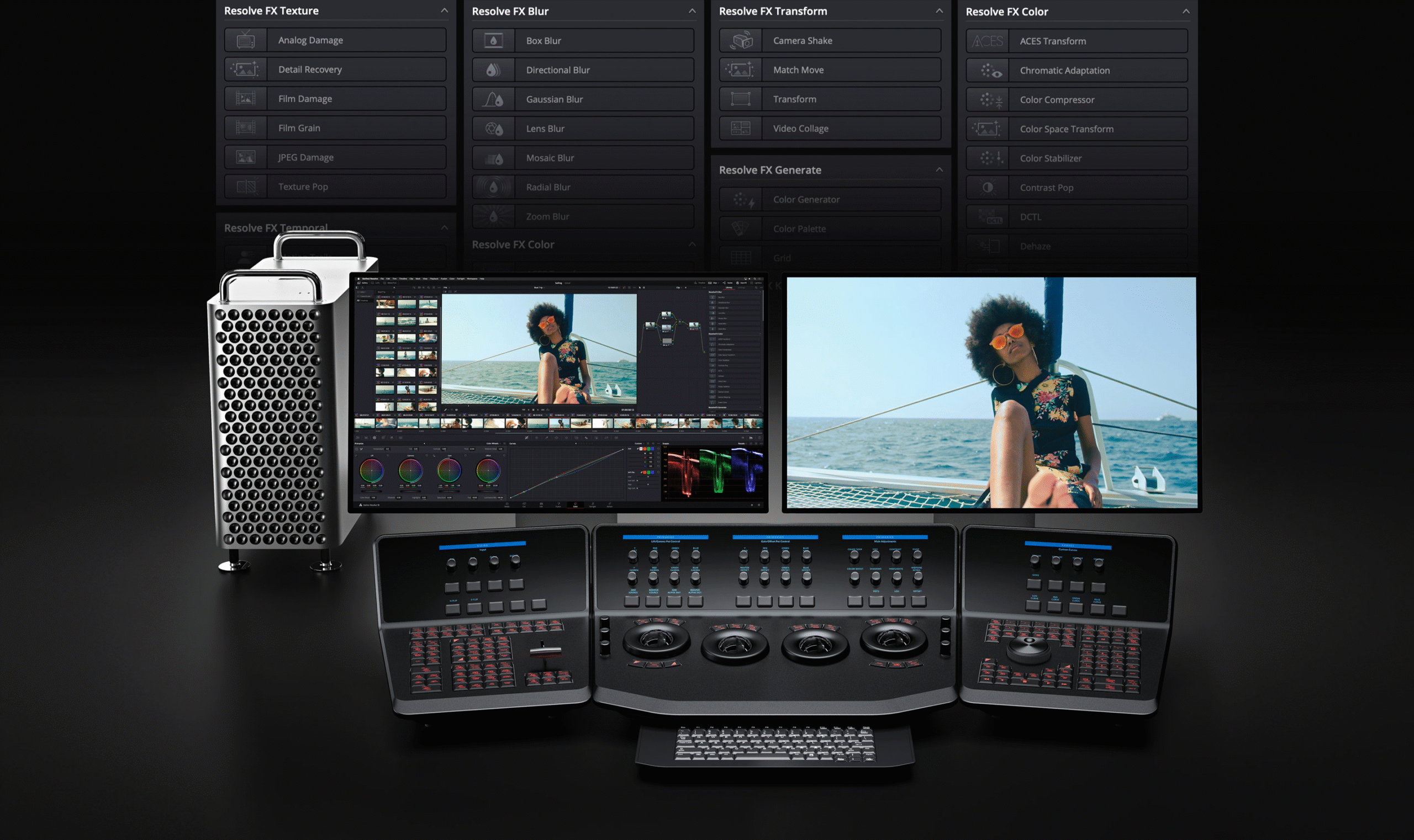 Fordybende lyd bruger højde, bredde og dybde til at omgive publikum i et 360-graders lydfelt, hvilket tilføjer en rumligt kreativ dimension til lydblanding af lydeffekter og musik. DaVinci Resolve Studio understøtter 3D-lyd i høj opløsning til at arbejde med rumlige formater og har import og eksport af de nyeste IAB- og ADM-filer. Objektbaserede formater som Dolby Atmos og MPEG-H bruger panoreringsautomatisering til at flytte lydobjekter og skabe en realistisk lydoplevelse, der skaleres baseret på størrelsen af biografen. Derudover: